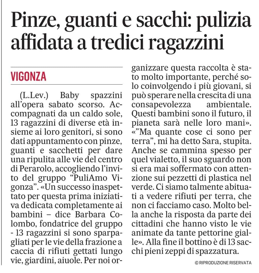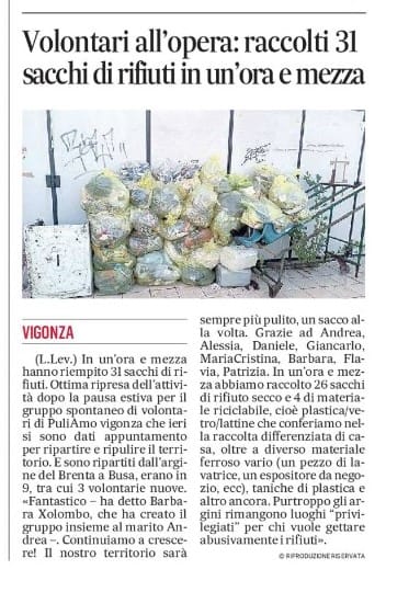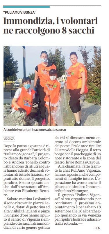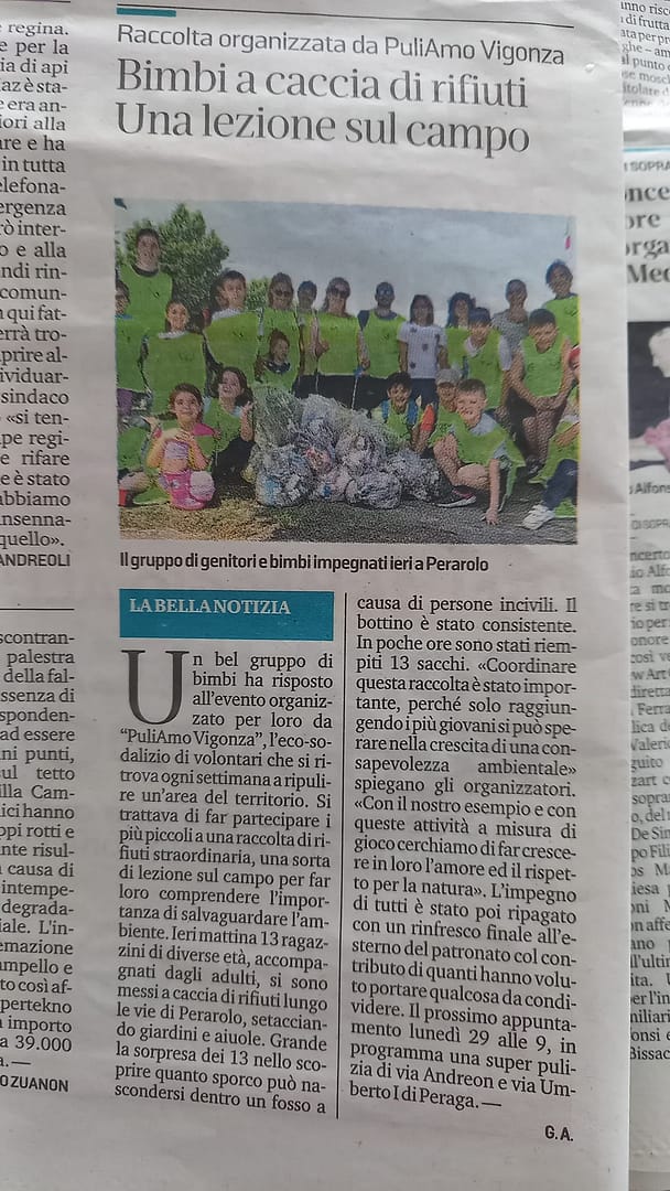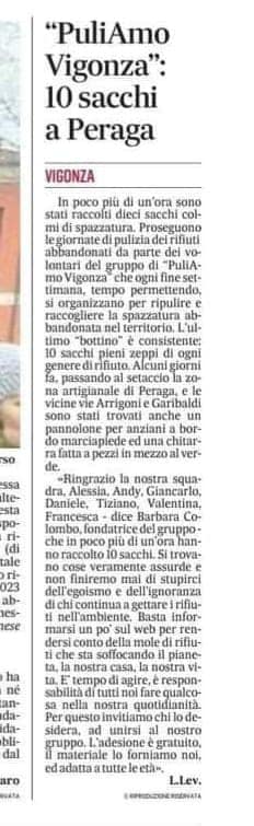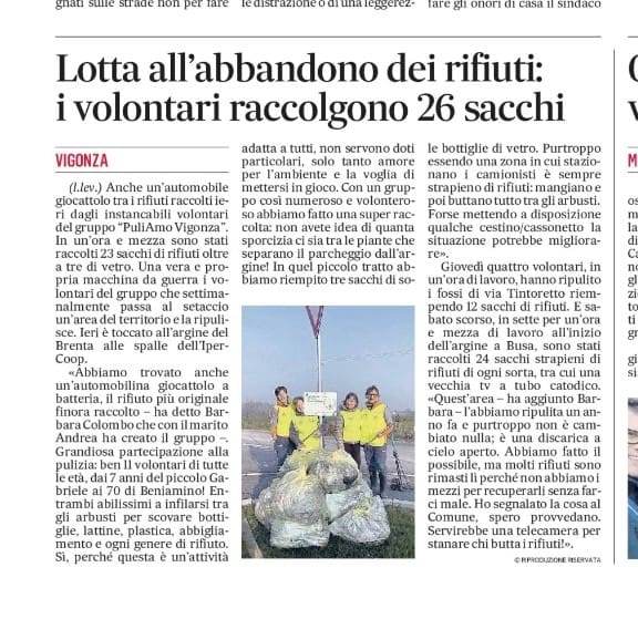 Una raccolta degli ultimi articoli riguardanti il nostro gruppo. Un grazie sentito alle giornaliste che ci seguono, nella speranza che sempre più persone dedichino un pò del loro tempo all’ambiente per un futuro migliore. Non solo qui a Vigonza, ma dappertutto!